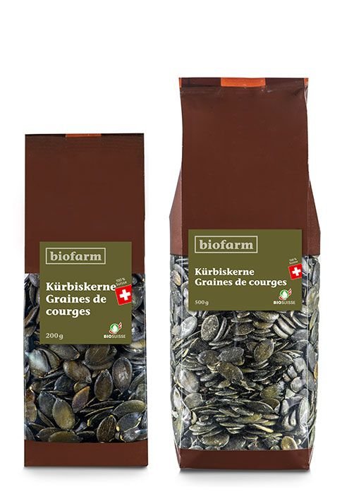 Die Ölkürbisse, grün-gelb gestreift, werden jeweils im Herbst direkt auf dem Feld maschinell aufgehoben und zerquetscht. Dann wird der Kernteil im Innern vom Fleisch getrennt. Man rechnet mit 500 bis 700 Kilo Kerne pro Hektare. Die ausgenommenen, zerkleinerten Kürbisse bleiben als Kompost auf den Feldern. Die so gewonnenen Kürbiskerne werden gereinigt, kontrolliert und getrocknet, direkt vermarktet, in Müeslis, Salatbeilagen und Broten genossen oder zu Kürbiskernöl weiterverarbeitet.