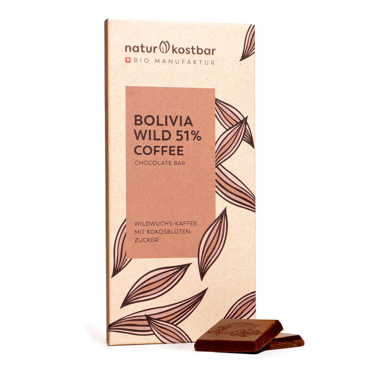 Steingemahlene Schokolade aus 51% wild gewachsenem Kakao und wilden Kaffeebohnen