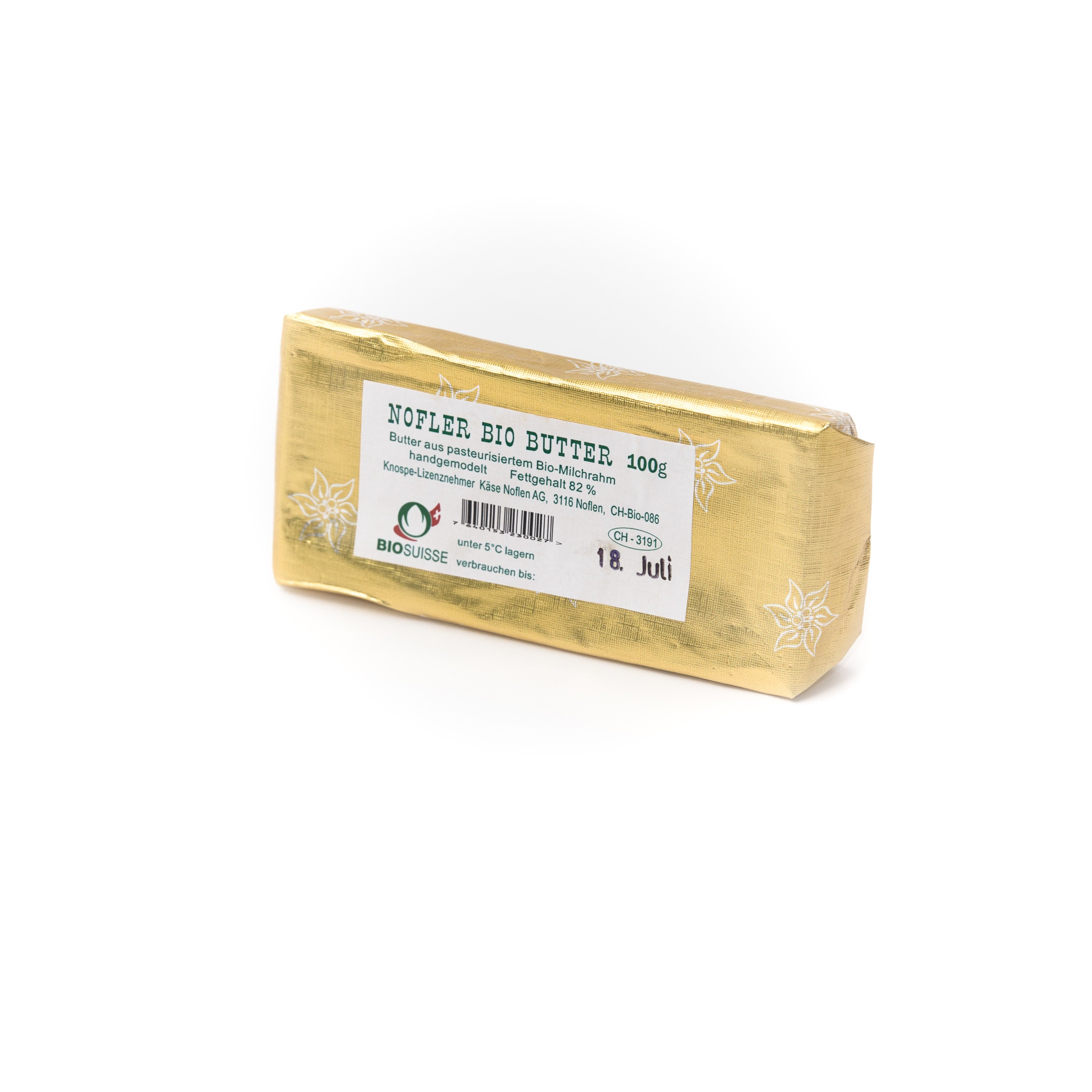 Butter aus pasteurisiertem Bio-Milchrahm, handgemodelt